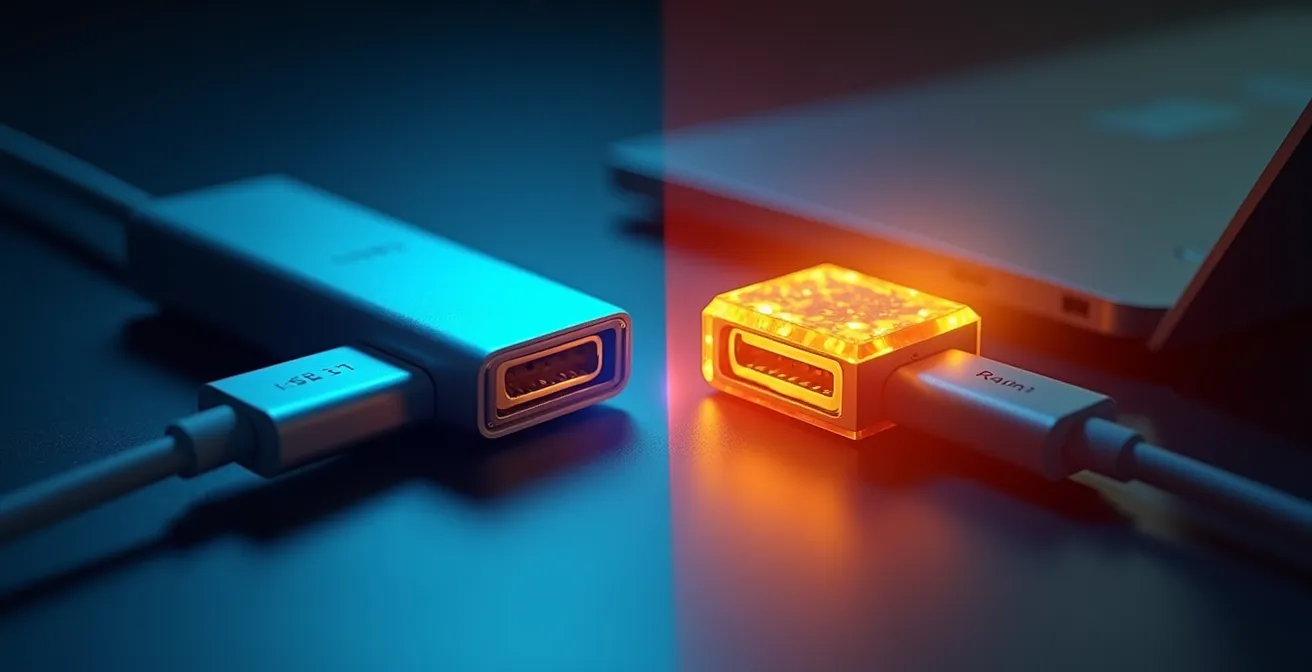 El debate no es simplemente sobre si un hub de marca reconocida es «mejor». La discusión de fondo, la que vemos en el taller con un soldador en la mano, es sobre la diferencia entre un dispositivo que sigue estándares de seguridad y otro que es una ruleta rusa para la electrónica de tu equipo. Mientras que las soluciones habituales se centran en listar puertos o comparar velocidades, ignoran el peligro invisible: la negociación de potencia, la disipación térmica y la integridad mecánica. Estos no son conceptos abstractos; son las razones por las que un puerto Thunderbolt puede costar cientos de euros en ser reparado.